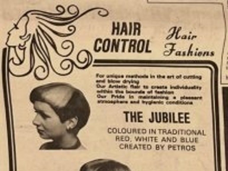 Jubilee Hair Control/Hair Fashions salon advert, 1977